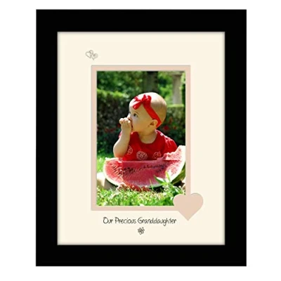 Granddaughter Photo Frame Our Precious Portrait Double Mounted Quality Gift 1040F (Black Finish Cream Mount Beige Inside)