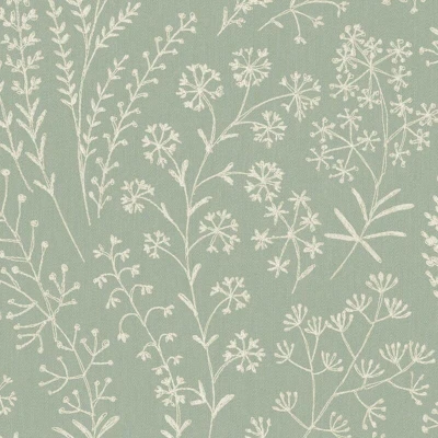 Grandeco Astrid Embroidery Stitch Herbarium Foliage Trail Vinyl Wallpaper, Sage Green A58702
