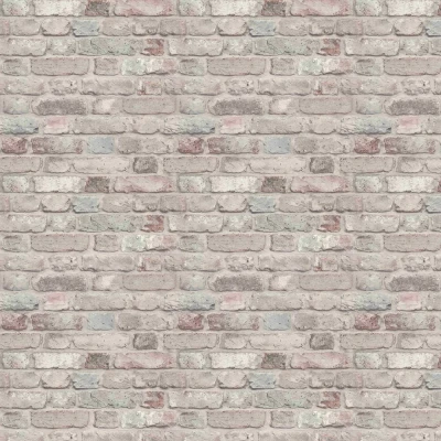 A realistic looking lightly textured, weathered brick wall effect design. Shown in the Neutral grey which with red brick detail.