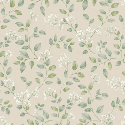 Grandeco Forget Me Not Leaf Trail Smooth Wallpaper, Neutral Green