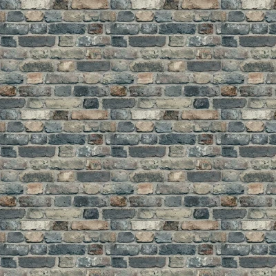 WallpaperDirectA realistic looking lightly textured, weathered brick wall effect design. Shown in the Blue grey with pink red brick details.