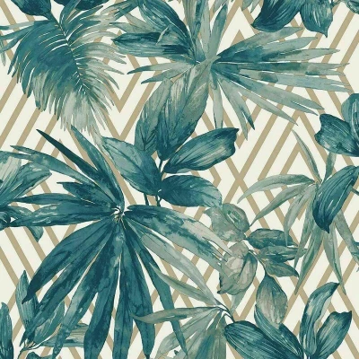Grandeco Life Forage Teal Wallpaper 156001 Metallic Geometric Palm Leaf