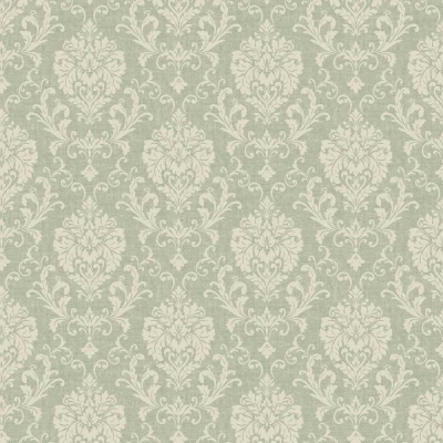 Grandeco Margritte Distressed Damask Textured Wallpaper, Green Cream