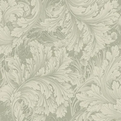 Grandeco Rossetti Acanthus Leaves Scroll Smooth Wallpaper, Green