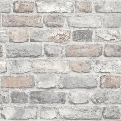 Grandeco Vintage Brick Wall Textured Wallpaper, Pastel