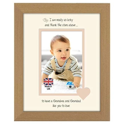 Photos in a Word Grandma and Grandad Photo Frame I Thank the Stars Portrait 1058F Double Mounted Quality Gift (Oak Finish Frame Cream Mount Beige Inside)