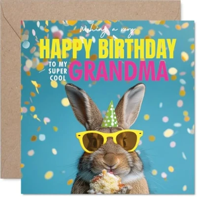 MAKE YOUR GRANDMA SMILE WITH THIS UNIQUE BIRTHDAY CARD: This exceptional quality Grandma birthday card for her shows the design 'Wishing a very Happy Birthday to my super cool Grandma'. If you are looking for a beautiful birthday card Grandma for her, then then this happy birthday Grandma card is bound to make her smile. Not just a birthday card for Grandma this could also be a birthday gifts for Grandma, Gran or Grandmother. WHAT DO YOU GET: The cards are printed on both sides with the inside print saying 'Have an Amazing Day' and ample space for your own personal message. The unique fun design is printed on a specially sourced and environmentally responsible board. At 360 microns thick the natural white one-sided gloss board has a quality look and feel. Supplied with a coloured gummed envelope to complement the design and ready to be sealed and sent in the post. NO INK SMUDGES: There is nothing worse than writing inside a card to find that the shiny surface makes the ink smudge. This is why we use a high quality one sided coated board. The uncoated side will absorb more of the ink from your pen to make smudging a thing of the past. Grandma birthday cards, Grandma birthday cards from Grandson. SIZES: Greeting Card = 145mm x 145mm, Envelope = 155mm x 155mm, Card Thickness = 360 micron. Happy birthday Grandma, Grandmas birthday card, Grandma cards birthday, birthday card Grandma, happy birthday Grandma card, Grandma gifts from Grandson. MADE AND QUALITY CHECKED IN THE UK: We print and manufacture all our products right here in the UK so you can be sure of a fast turnaround and a product that is expertly made. Using environmentally responsible premium board our card is conscious of the responsible management of the world's forests - happy birthday card Grandma, Grandma birthday cards.