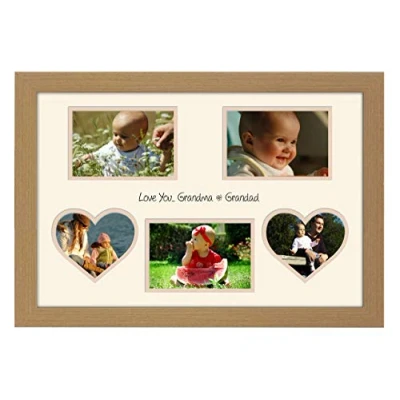 Grandma & Grandad Photo Frame Double Mounted Love You for 6 x 4 photographs (Oak Finish Cream Mount Beige Inside)