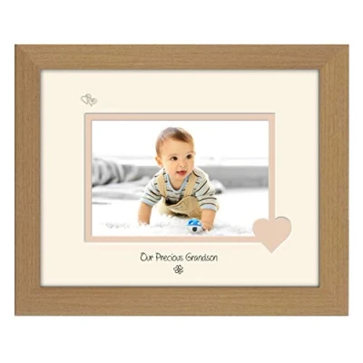 Grandson Photo Frame Our Precious Double Mounted Quality Gift (Oak Finish Cream Mount Beige Inside)