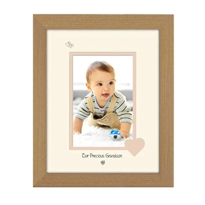 Grandson Photo Frame Portrait Our Precious Double Mounted Quality Gift 1041F (Oak Finish Cream Mount Beige Inside)