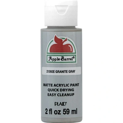 Granite Gray Apple Barrel Colors are the crafters choice for quality, selection, and value. The versatile, all-purpose acrylic paint is ideal for craft projects of all kinds and works on most porous surfaces: wood, plaster, tin, craft foam, Styrofoam, terracotta, and more. Offering excellent coverage, Apple Barrel dries quickly to a soft matte finish. All colors are AP-certified non-toxic and water-based for easy soap and water cleanup. PE21392EX MPN 21392EX
