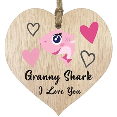 GIFTS FOR GRANNY TO MAKE THEM SMILE: Gifts for a granny. Bearing the Words: Granny Shark I Love You. A beautifully made heart that is perfect to give as a present to let them know how special they are. EVERY HEART IS TRUELY UNIQUE: Unlike other brands our Friendship Gifts are made from raw wood and not a laminated MDF. This means that every single heart will have its own pattern and indentation from the grain of the wood used. Each heart is hand finished with a lacquer varnish that really accentuates the deep colour of the wood and makes the ink of the pattern/text clearer and brighter in colour. WHAT DO YOU GET: Perfectly designed gifts for grannys under 10 pounds presents. Each high-quality wooden heart is carefully packed in its own protective bag and comes with a tied jute twine. A great idea for your friends birthday decorations - The Perfect gifts for amazing friends from Stuff4 Ltd. MADE AND QUALITY CHECKED IN THE UK: We manufacture all our product right here in the UK so you can be sure of a fast turnaround and a product that is expertly made - The best gifts for grannys on the market. These gifts for grannys under 5 pounds are not just silly gifts they can be the most heartfelt thank you gifts that will last a lifetime. Why not use these as xmas gifts, as they will look great hanging from a Christmas Tree. EASY TO HANG: The hanging wooden heart plaque comes equipped with a small jute twine/string, which can be then used to hang it up for decoration. The wooden sign is convenient for you to assemble without spending too much effort and time.