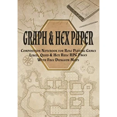 Graph & Hex Paper Composition Notebook For Role Playing Games: Lined, Quad Rule RPG Pages With Free Dungeon Maps
