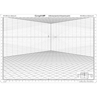 More realism in your drawings with the GRAPH'IT perspective grids The perspective grids allow you to integrate into a perspective characters or objects. They are ideal for technical drawing, illustration or comics Can be used with light tables. Can also be used in transparency under tracing paper or layout. A4 Size - 5 Designs Available