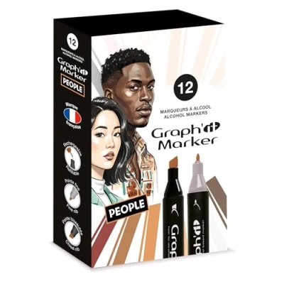 Graph'it Pack of 12 Double Ended Alcohol Based Markers Skin Colors