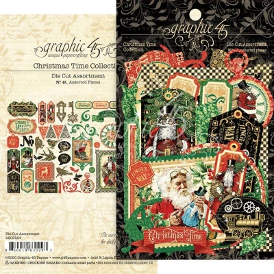 Graphic 45 GR4502124 Christmas Time Die Cut Pad, Assortment, 51 Pieces