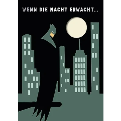 The card plays a cover version of "The Batman Theme" when opened Coloured light effects when opening the birthday card provide an extra wow effect Thanks to the large format, the card offers enough space for congratulations and signatures on the left double page Love wishes combined with a great song makes this greeting card a real gift highlight Size: 8.75" x 6.25" (22.2cm x 15.7cm) Includes envelope and gorgeous silver finish on the front