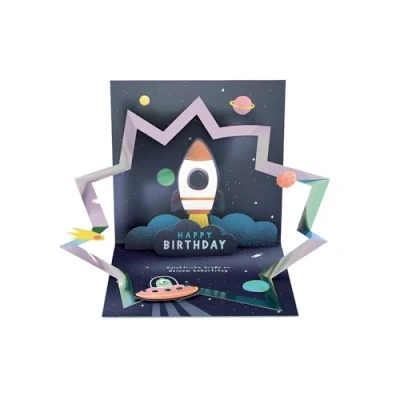 Graphic Workshop, Pretty Pop Up Card, Three Dimensional, Happy Birthday Galactic Greetings for Your