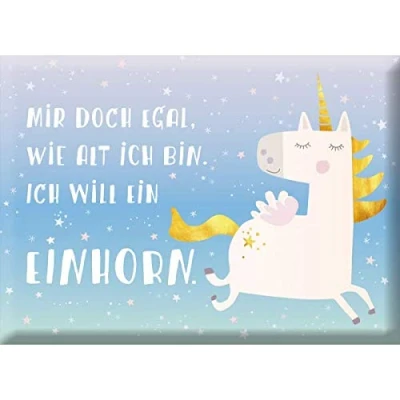 'Graphics Workshop 60694 Fun Fridge Magnet with "Mir Doch Egal, How Old I bin. Ich Will Ein Einhorn, Vintage Retro Nostalgic Metal, Plain, 3.5 x 5 cm