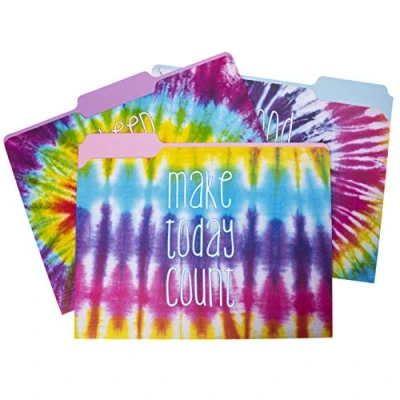 Graphique Tie Dye File Folder Set Includes 9 Folders and 3 Unique Go Getter Designs, Embellished w/Gold Foil on Durable Triple Scored Coated Cardstock