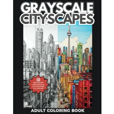 Grayscale Cityscapes Adult Coloring Book: 50 Amazingly Detailed Urban Scenes to Color for Relaxation and Mindfulness