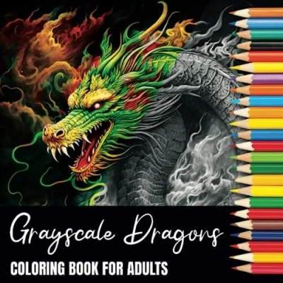 Grayscale Dragons Coloring Book For Adults: 40 Beautiful Dragon Designs in on Black Backed Pages (Grayscale Books Adults)