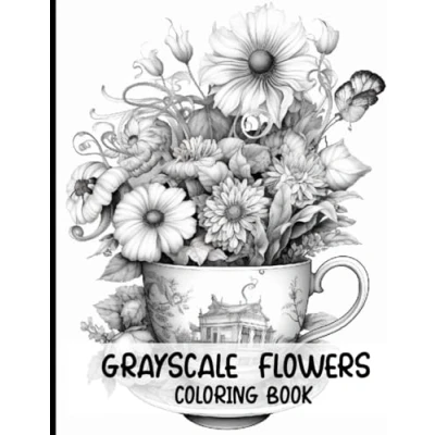 Grayscale Flowers Coloring Book: For Mindfulness Happiness And Stress Relief Adult Book