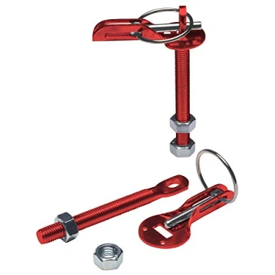 Set universal bonnet hooks/pins - red aluminum