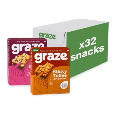 Graze Cherry Bakewell & Sticky Toffee Oat Boost bars snacks Made With Whole Oats and Natural Flavours 8x4 snack Total of 32