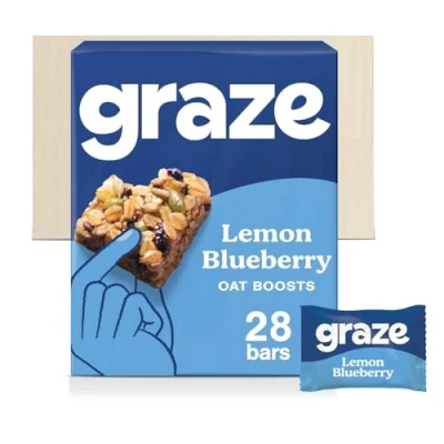 Graze Lemon Blueberry Superfood Oat Boost Bars Vegetarian Snacks, Whole Packaging may vary (28 Snacks 7 Packs of 4 x 30g)