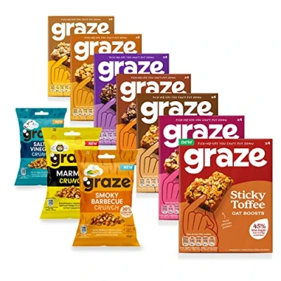 Graze Sweets & Crisps Snacks Selection Snack Bars variety box(28x30g)&Snacks Multipack of BBQ,Marmite Salt&Vinegar 52g bags Packaging may vary (31 in a box)