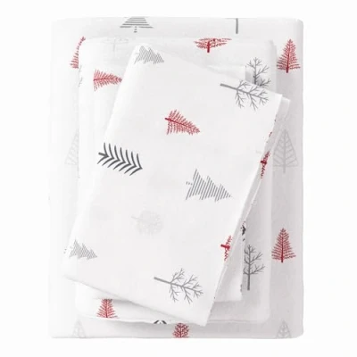 Great Bay Home Flannel Sheet Set King Size 100% Turkish Cotton, Double Brushed, Printed Bed Sheets Ultra Soft, Cozy, 4 Piece Bedding (Winter Trees Red)