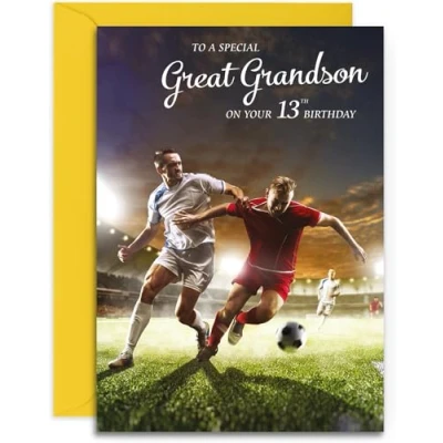 Great Grandson 13th Football Birthday Card Medium Sized (A5 Size 148mm x 210mm) with Envelope