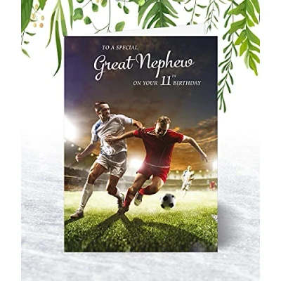 Great Nephew 11th Football Birthday Card Medium Sized (A5 Size 148mm x 210mm) with Envelope