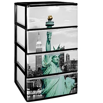 Great Plastic Set 4 Stackable Drawers Black Iris 380X370X626 mm Dec. Iml N.Y, One Size