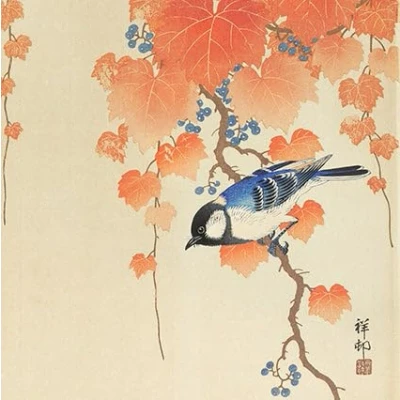 Great Tit on Paulovnia branch by Ohara Koson 14x14cm Greetings Card