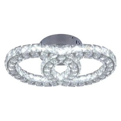 GreeLustr Crystal Chandelier Light Fixture, 3 Color Changeable Led Ceiling Lights, Flush Mount Stainless Steel Rings Lamp Fixturre for Bedroom, Living Room, Dinning Room (2 Style 1)
