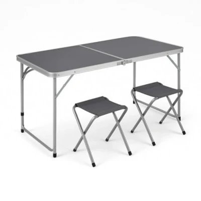 Practical set for on the go - The Greemotion folding camping table comes with 4 chairs - ideal for camping, picnics, festivals or travelling with friends and family. Compact & Easy to Carry - Thanks to the aluminium frame and folding design, the travel table can be stored ultra-light and comfortable to carry - ideal for travelling. Quick assembly and stable stand - The folding table impresses with its uncomplicated assembly and secure hold on a wide range of surfaces EASY CARE & WEATHERPROOF - The table surface is easy to clean and the material is weather-resistant - ideal in unstable outdoor conditions. Versatile - Whether in the garden, camping or at the lake: the Greemotion camping table is the perfect companion for outdoor activities.