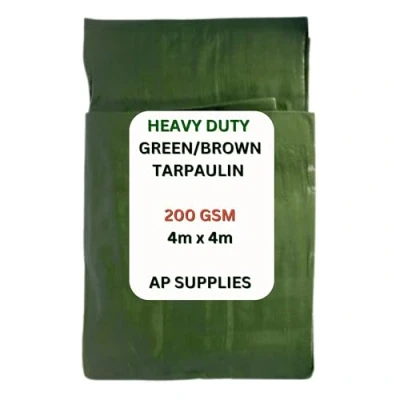 Green/Brown Tarpaulin Cover 220gsm Thick Waterproof, Weatherproof, Frost Resistant, UV Protection, Universal, Multipurpose, Groundsheet, Camping, Boating, Hiking (4m X 4m 200GSM)