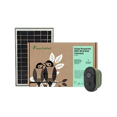 Green Feathers Battery Powered Solar Bird Box Camera With Wi FI Connection, Outdoors Wildlife for Boxes (Solar Only)