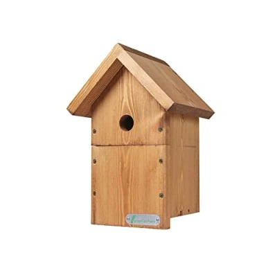 Green Feathers Wooden Deluxe Bird Box Waterproof & Ventilated 32mm Hole Ideal For a Variety of Birds Nesting House Easy Installation