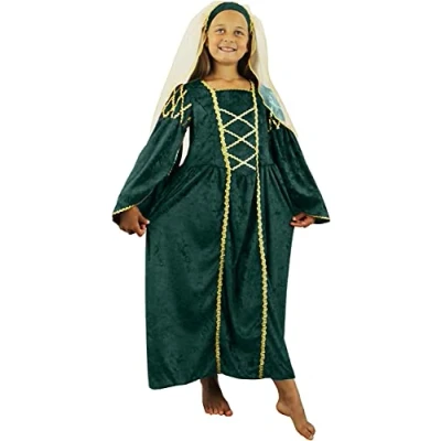 GIRLS GREEN TUDOR PRINCESS DRESS: Look and feel like Royalty at the next fancy dress event, whether it is Princess themed or not, you'll look great in this Girls Green Tudor Princess Dress! TUDOR DRESS DETAILS: Your Girls Tudor Princess Dress is a Long, Dark Green Velour Dress with Long Flared Sleeves, Gold Trim detailing around the Sleeves and down the front, comfortable zip up fastening and a Yellow Veil Headband, the perfect Princess Dress! AVAILABLE IN MULTIPLE SIZES: The Girls Green Tudor Princess Dress is available in sizes Small to X-Large: Medium - (7 - 9 years) Chest: 25" (64cm), Dress Length: 36" (92cm) QUALITY DESIGN: This Tudor Princess Dress is a quality made costume piece, made with a Dark Green Velour material, detailed with Gold Embroidery Trim and a matching Headband with a Yellow Veil! PERFECT FOR PRINCESS FANCY DRESS: Whether you're attending a Historical fancy dress event, a Princess themed party or just looking for a beautiful Dress for general dress up days, this Girls Green Tudor Princess Dress will be the perfect choice for you!, Manufacturer: I Love Fancy Dress