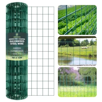 Green Haven Chicken Wire Fence 1M x 10M PVC Coated Garden Fencing Roll, Galvanized Steel Mesh for Poultry, Pet Barrier & Allotments Durable, Easy to Install Heavy Duty