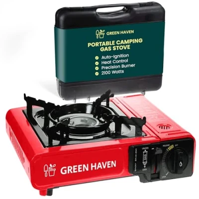 GREEN HAVEN Portable Camping Stove with Cary Case Premium Gas Stove, EN417 Compliant, Automatic Ignition & Heat Control, Red