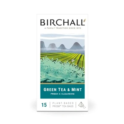 Green Tea & Mint 15 Prism Bags, Plant Based Gluten Free Decaffeinated Refreshing Blend of and Peppermint Leaves