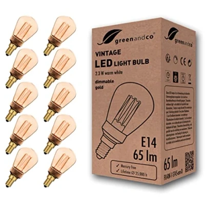 QUALITY: Experience the unique charm of a nostalgic light bulb with the efficiency and longevity of modern LED technology. The greenandco vintage-style LED bulb creates a cosy atmosphere and does not flicker, providing pleasant lighting. Ideal for cafés, bars, restaurants or your living room at home. Its retro look is particularly suitable for use in open luminaires, chandeliers or as a solo bulb. DESIGN: The laser-engraved acrylic glass cylinder inside the bulb creates an authentic filament effect. The outer glass bulb can be unscrewed to straighten the acrylic glass cylinder if necessary. AMBIENT LIGHTING: Due to the extra warm colour of the light and low brightness, the light is similar to that of a candle. Therefore, the bulb is not suitable for room lighting. NO ENERGY EFFICIENCY CLASS: This bulb does not have an energy efficiency class due to its colour value components in accordance with EU Regulation 2019/2015, as it is not considered a light source in accordance with Article 2, paragraph 1a. The colour value components are: x=0.5403; y=0.4118. Therefore, it is only intended for use as a decorative mood light bulb. PRODUCT SAFETY: The safety of our products is a top priority for us. greenandco bulbs comply with all relevant national and European standards and have been tested by independent institutes. We can send you the certificates and test reports upon request. greenandco LED bulbs do not contain mercury and do not emit UV radiation., Weight: 1.2566348934 pounds, Manufacturer: FU-RN-1-ST45-am-D x10