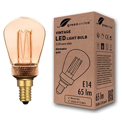 QUALITY: Experience the unique charm of a nostalgic light bulb with the efficiency and longevity of modern LED technology. The greenandco vintage-style LED bulb creates a cosy atmosphere and does not flicker, providing pleasant lighting. Ideal for cafés, bars, restaurants or your living room at home. Its retro look is particularly suitable for use in open luminaires, chandeliers or as a solo bulb. DESIGN: The laser-engraved acrylic glass cylinder inside the bulb creates an authentic filament effect. The outer glass bulb can be unscrewed to straighten the acrylic glass cylinder if necessary. AMBIENT LIGHTING: Due to the extra warm colour of the light and low brightness, the light is similar to that of a candle. Therefore, the bulb is not suitable for room lighting. NO ENERGY EFFICIENCY CLASS: This bulb does not have an energy efficiency class due to its colour value components in accordance with EU Regulation 2019/2015, as it is not considered a light source in accordance with Article 2, paragraph 1a. The colour value components are: x=0.5403; y=0.4118. Therefore, it is only intended for use as a decorative mood light bulb. PRODUCT SAFETY: The safety of our products is a top priority for us. greenandco bulbs comply with all relevant national and European standards and have been tested by independent institutes. We can send you the certificates and test reports upon request. greenandco LED bulbs do not contain mercury and do not emit UV radiation., Weight: 0.110231131 Pounds, Manufacturer: FU-RN-1-ST45-am-D