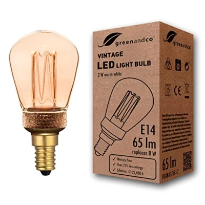 QUALITY: Experience the unique charm of a nostalgic light bulb with the efficiency and longevity of modern LED technology. The greenandco vintage-style LED bulb creates a cosy atmosphere and does not flicker, providing pleasant lighting. Ideal for cafés, bars, restaurants or your living room at home. Its retro look is particularly suitable for use in open luminaires, chandeliers or as a solo bulb. DESIGN: The laser-engraved acrylic glass cylinder inside the bulb creates an authentic filament effect. The outer glass bulb can be unscrewed to straighten the acrylic glass cylinder if necessary. AMBIENT LIGHTING: Due to the extra warm colour of the light and low brightness, the light is similar to that of a candle. Therefore, the bulb is not suitable for room lighting. NO ENERGY EFFICIENCY CLASS: This bulb does not have an energy efficiency class due to its colour value components in accordance with EU Regulation 2019/2015, as it is not considered a light source in accordance with Article 2, paragraph 1a. The colour value components are: x=0.5413; y=0.4105. Therefore, it is only intended for use as a decorative mood light bulb. PRODUCT SAFETY: The safety of our products is a top priority for us. greenandco bulbs comply with all relevant national and European standards and have been tested by independent institutes. We can send you the certificates and test reports upon request. greenandco LED bulbs do not contain mercury and do not emit UV radiation., Weight: 0.0440924524 Pounds, Manufacturer: FU-RN I-ST45-1-2