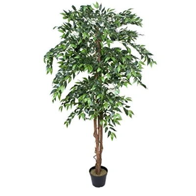 GreenBrokers Premium Artificial Ficus Weeping Fig Tree 180 cm Potted Plant, Green, 180cm