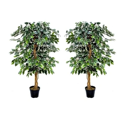 GreenBrokers Premium Artificial Variegated Ficus Tree Potted Plant 140 cm (Set of 2), Two Green, one Size